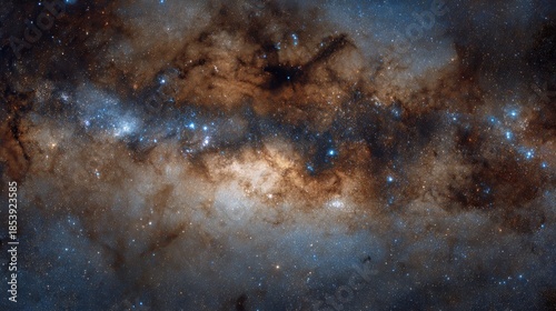 © Ilona, Fototapeta premium Bright stars shine among clouds of gas in a galaxy far from Earth. This view shows the beauty of space during an observation in a dark area away from city lights