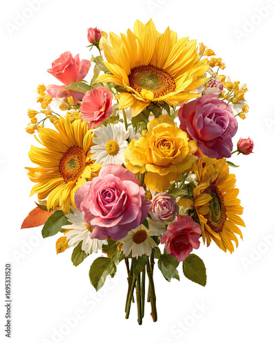 Fototapeta premium Bright Summer Bouquet with Sunflowers, Daisies, and Roses on Transparent Background