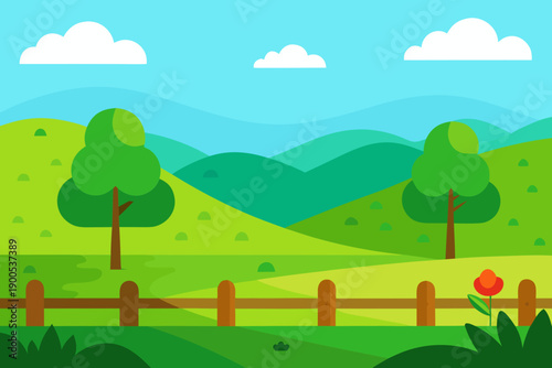 © Chamok Chandra, Obraz premium Bright Summer Meadow Flat Vector