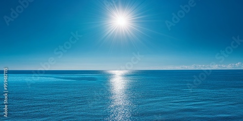 © adri, Fototapeta premium Bright sun shines over calm blue ocean water.