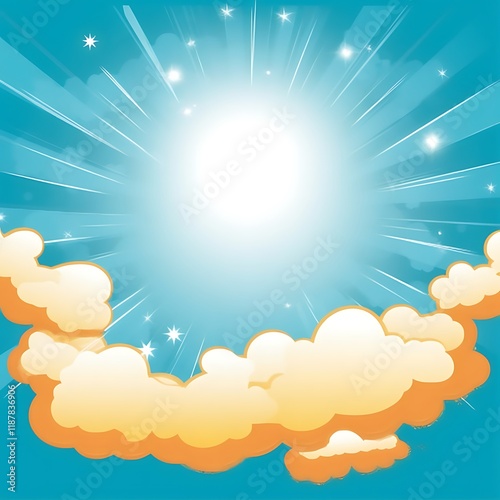 Fototapeta premium Bright Sun Shining Through Fluffy Clouds In A Blue Sky