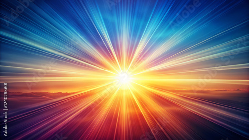 © Arethaawykoff, Obraz premium Bright sunburst with rays of light in vibrant colors and subtle gradients