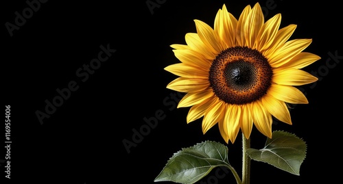 Obraz premium Bright sunflower blooming against a dark background in a minimalistic style