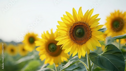 © nattapon98, Fototapeta premium Bright sunflower in a field, close up with natural background