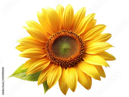 © ปทุมพร นาจรัส, Fototapeta premium Bright Sunflower, Isolated, Vibrant Yellow Flower, High Depth of Field, Cheerful Summer Bloom, White Background, Macro Photography