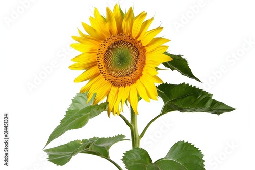 © Yuliia, Fototapeta premium bright sunflower stands alone on a clear, transparent background.
