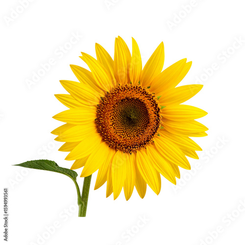 Fototapeta premium Bright Sunflower with Long Stem Leaning Left, isolated on a transparent...