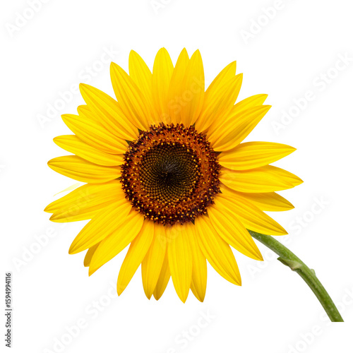 Fototapeta premium Bright Sunflower with Long Stem Leaning Left, isolated on a transparent background”