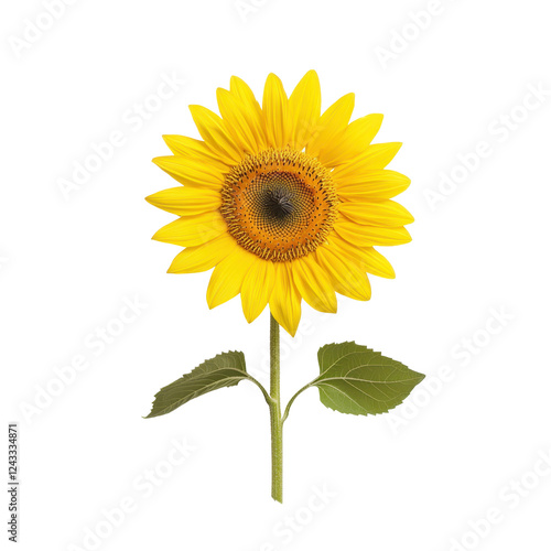 © Kamonwan, Obraz premium Bright sunflower with vibrant yellow petals on a white isolated background.