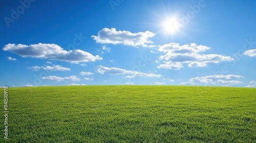 Obraz premium Bright Sunlight Over Lush Green Grass Field Under Expansive Blue Sky