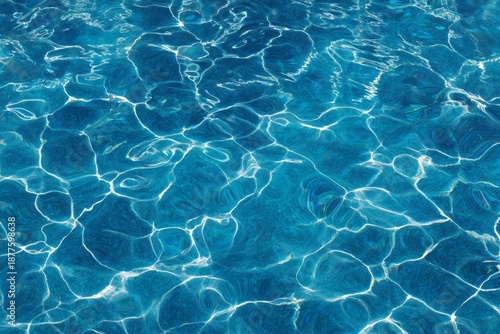 © Nirwasita, Obraz premium Bright sunlight reflects across the vibrant blue surface of moving water.