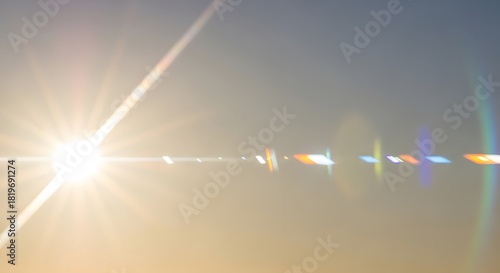 © VextoraDesign, Obraz premium Bright sunlight shining through the atmosphere creating a lens flare effect with rainbow colors visible