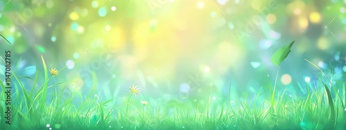 Obraz premium Bright sunlight through lush green grass and bokeh.