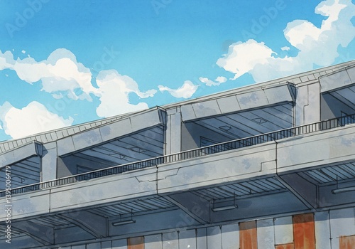 © Phung, Naklejka premium Bright sunlit city overpass dynamic design. AI Generated