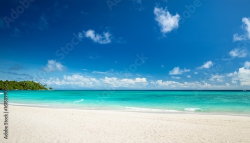 Fototapeta premium bright sunny day at tropical beach with white sand and turquoise ocean