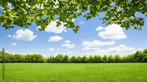 Obraz premium Bright Sunny Day Landscape with Lush Green Field and Blue Sky