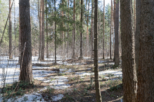 © keleny, Fototapeta premium Bright sunny pine forest in the snow
