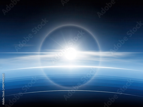 © Sojib, Obraz premium Bright sunrise over earth horizon seen from space with glowing atmospheric layers