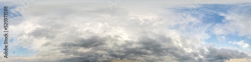 Obraz premium Bright sunset sky panorama with Cirrus clouds. Hdr seamless spherical equirectangular 360 panorama. Sky dome or zenith for 3D visualization, game and sky replacement for aerial drone 360 panoramas.