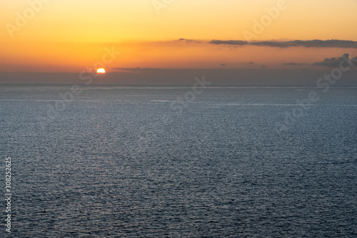 © Артем Ткачук, Obraz premium Bright sunset with orange sun above the sea surface. Atlantic ocean.