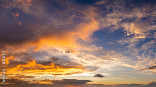 Fototapeta premium Bright sunset with setting sun behind vivid orange and yellow clouds