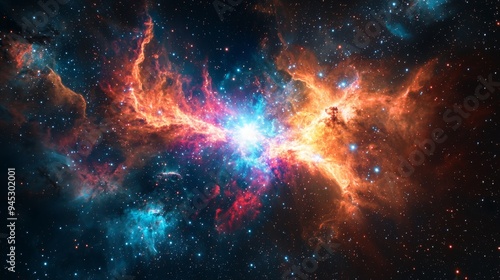 Naklejka premium Bright supernova explosion within a distant galaxy, with vivid colors