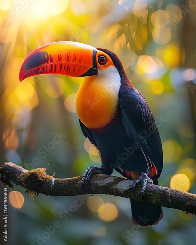 © Syed, Obraz premium Bright toucan with a large beak resting on a branch, digital painting