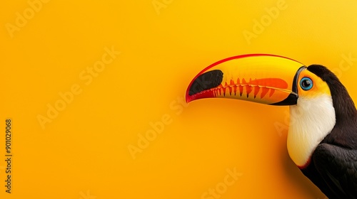 © Paul, Naklejka premium Bright toucan with a multi-colored beak, isolated on a simple background, plenty of space for text