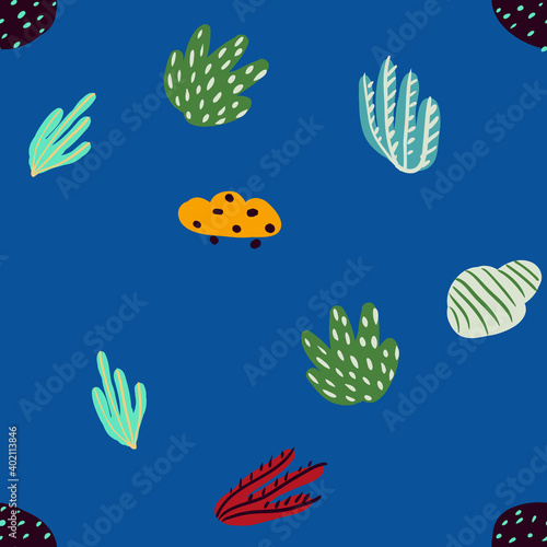 Naklejka premium Bright underwater seamless pattern with beautiful corals.