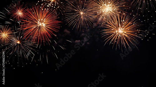 © Victoria, Naklejka premium bright unforgettable festive golden fireworks against the backdrop of the black sky, copy space
