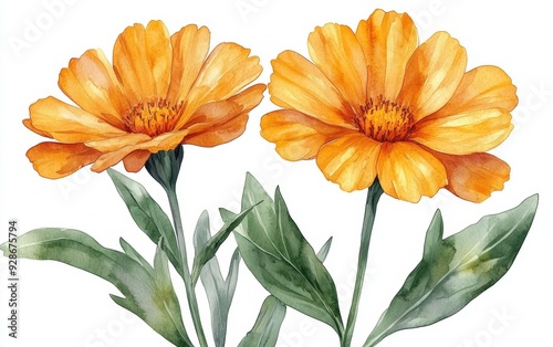 © Ruby Siam, Fototapeta premium Bright, vibrant orange flowers with lush green leaves, perfect for adding a touch of nature to any project or design.