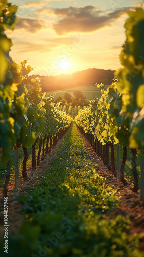 Fototapeta premium Bright Vineyard with Green Grass