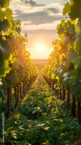 © M.Gierczyk, Fototapeta premium Bright Vineyard with Green Grass