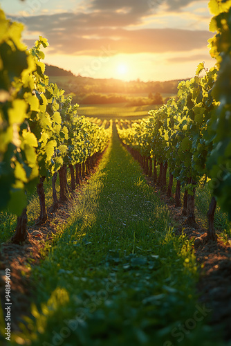 © M.Gierczyk, Fototapeta premium Bright Vineyard with Green Grass