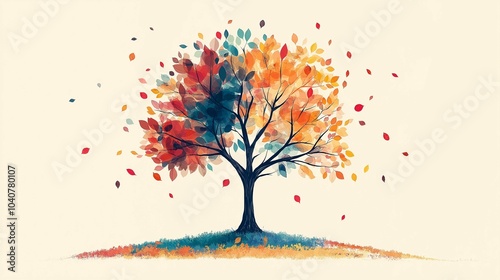 © Jaruwan, Fototapeta premium Bright Whimsical Tree with Colorful Leaves Illustration