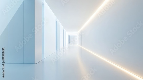Fototapeta premium Bright White Corridor with Soft Lighting: Minimalist Architectural Interior...