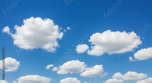 © senyumanmu, Fototapeta premium Bright white cumulus clouds against a clear blue sky
