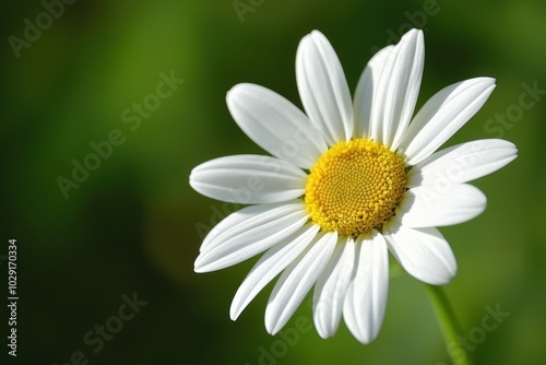 © Mykhailo Podolian, Obraz premium Bright white daisy blooming under golden sunlight in a lush green garden setting