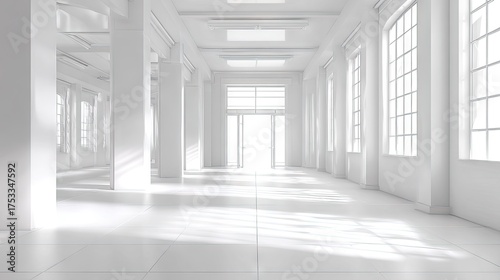 Fototapeta premium Bright white interior architecture with columns and large windows