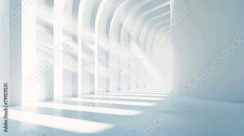 Obraz premium Bright white interior with arches and natural light creating shadows