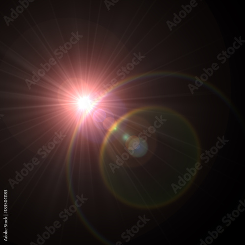 © zanib amna, Obraz premium Bright white light source with red glowing rays and black abstract background effect.
