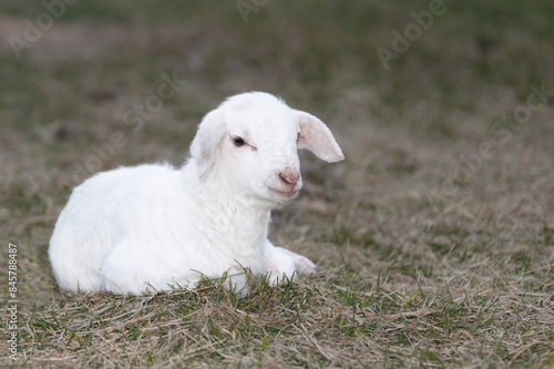© Guy Sagi, Obraz premium Bright white sheep lamb laying down
