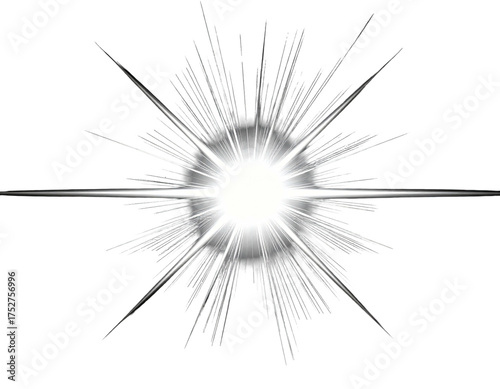 © Virendra, Obraz premium Bright white starburst emanating light with sharp, radial rays on black