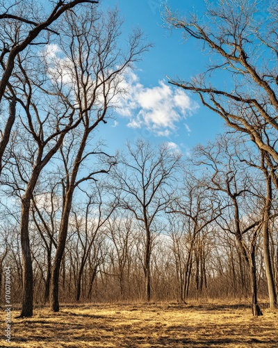 © gen_pick, Fototapeta premium Bright winter forest with barren trees scenic view