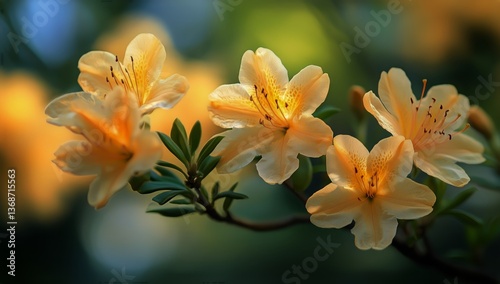 © olegganko, Fototapeta premium Bright Yellow Azalea Flowers Bloom in a Vibrant Garden During Spring Season