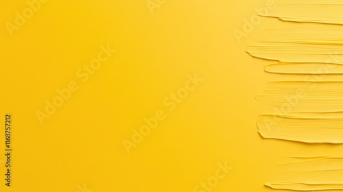 Fototapeta premium Bright yellow background with textured paint strokes on one side.