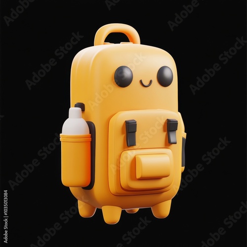 Fototapeta premium Bright Yellow Backpack with Water Bottle and Multiple Pockets