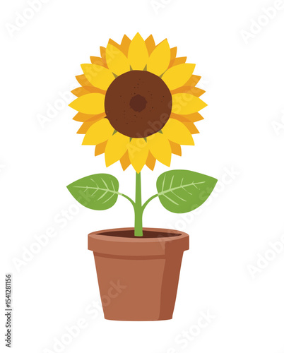 © color, Obraz premium Bright Yellow Blooming Potted Sunflower