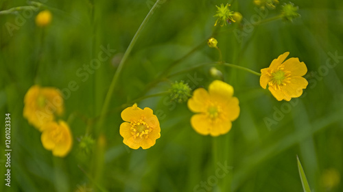 © Kristof Lauwers, Obraz premium Bright yellow buttercup flowers in a field. - - ranunculus acris