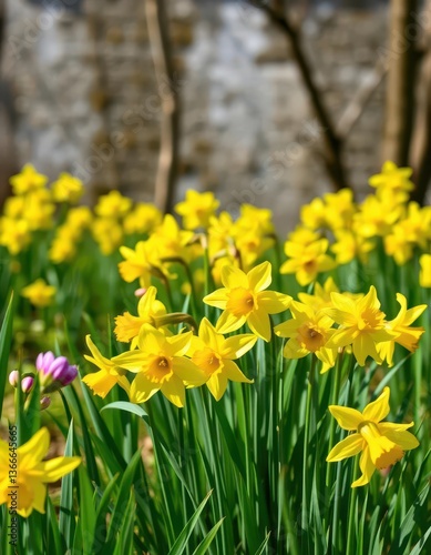 © photohappy, Fototapeta premium Bright yellow daffodils blooming in a spring meadow, field, macro